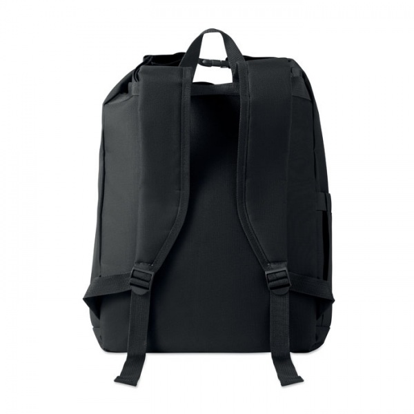 15-palcový batoh na notebook s rolovacím vrchom vyrobený z polyesteru 600D RPET s polstrovanou podšívkou z 210D RPET. Má predné vrecko na zips, elastické bočné vrecko a nastaviteľné ramenné popruhy.