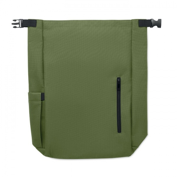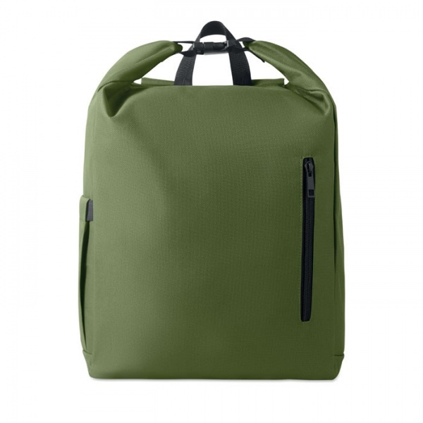 15-palcový batoh na notebook s rolovacím vrchom vyrobený z polyesteru 600D RPET s polstrovanou podšívkou z 210D RPET. Má predné vrecko na zips, elastické bočné vrecko a nastaviteľné ramenné popruhy.