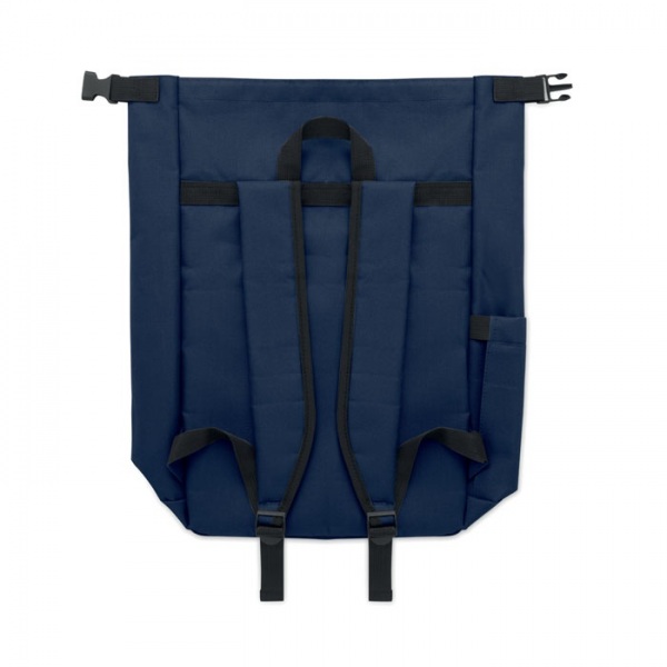 15-palcový batoh na notebook s rolovacím vrchom vyrobený z polyesteru 600D RPET s polstrovanou podšívkou z 210D RPET. Má predné vrecko na zips, elastické bočné vrecko a nastaviteľné ramenné popruhy.