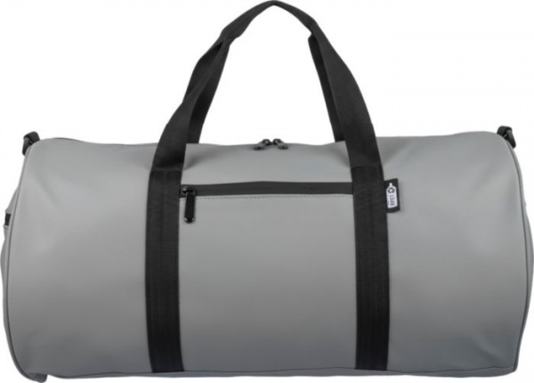 Cestovná taška z rPET vyrobená z polyesteru 600D s podšívkou 210D a vodeodolným PU záterom. Má hlavný priestor s objemom 40 l, predné a bočné vrecká na zips, bočné sieťované vrecko, dve rukoväte a nastaviteľný ramenný popruh.