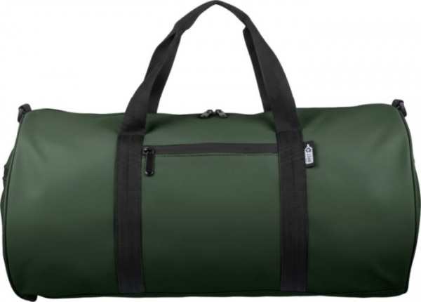 Cestovná taška z rPET vyrobená z polyesteru 600D s podšívkou 210D a vodeodolným PU záterom. Má hlavný priestor s objemom 40 l, predné a bočné vrecká na zips, bočné sieťované vrecko, dve rukoväte a nastaviteľný ramenný popruh.