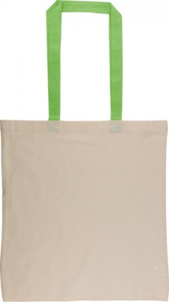 Nákupná taška z bavlny Oeko-Tex® (140 g/m2) v prírodnej farbe s farebnými rúčkami. Rozmery 38 × 42 cm s rúčkami dlhými 70 cm (šírka 2,5 cm). Vrátane štítku Oeko-Tex®.