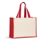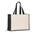 Plátená taška s laminovaným dnom a bokmi z juty v prírodných odtieňoch. 60 cm rukoväte.