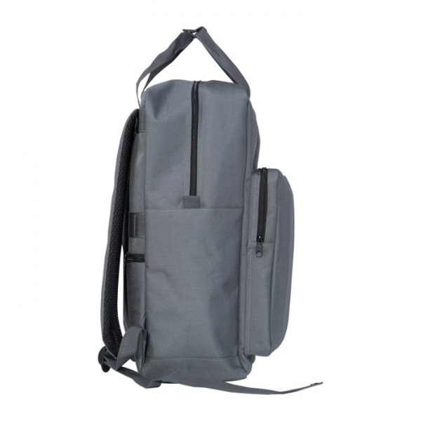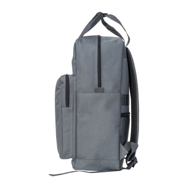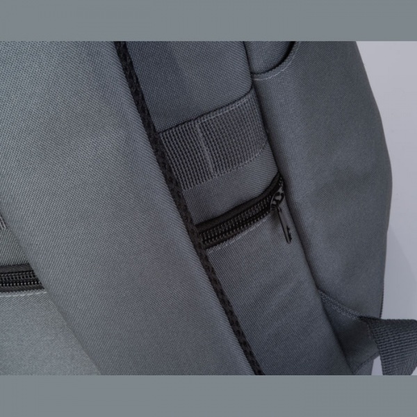 Batoh z RPET s bočnými vreckami, polstrovanými ramennými popruhmi, predným vreckom, priehradkou na notebook, popruhom na kufor a ochranou proti krádeži, uzamykateľnými zipsami.