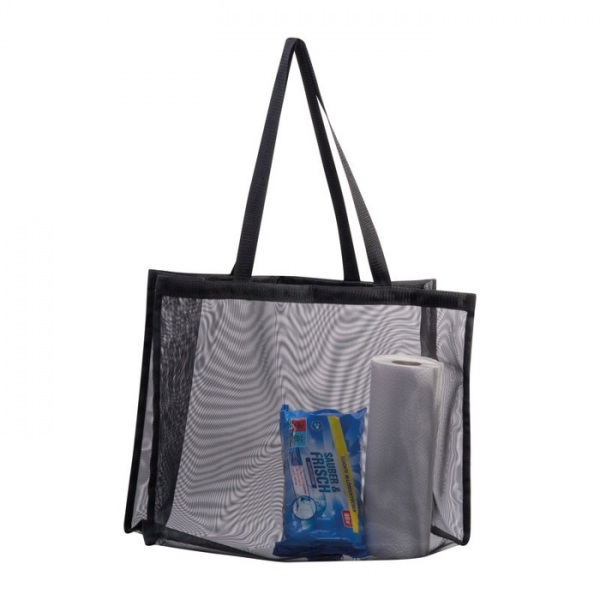Veľká, priehľadná polyesterová plážová alebo nákupná taška s dlhými ušami.