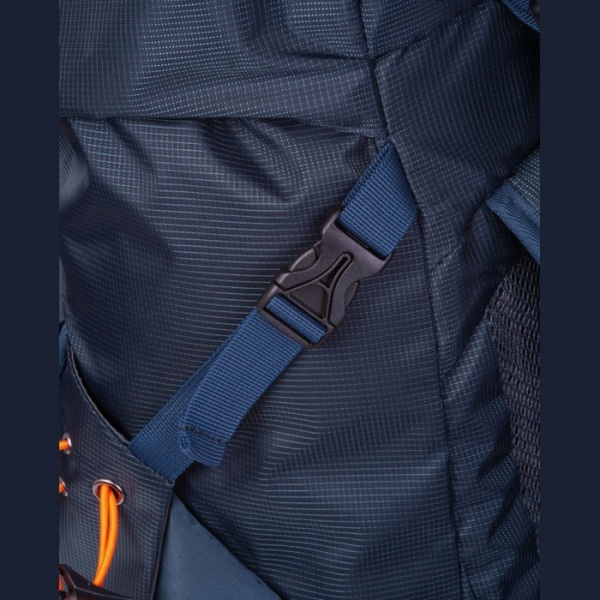 Pevný turistický batoh s ergonomickým bedrovým pásom, kapacita 25 L, s vreckami na ochranu pred dažďom na spodnej strane a na zadnom polstrovaní.