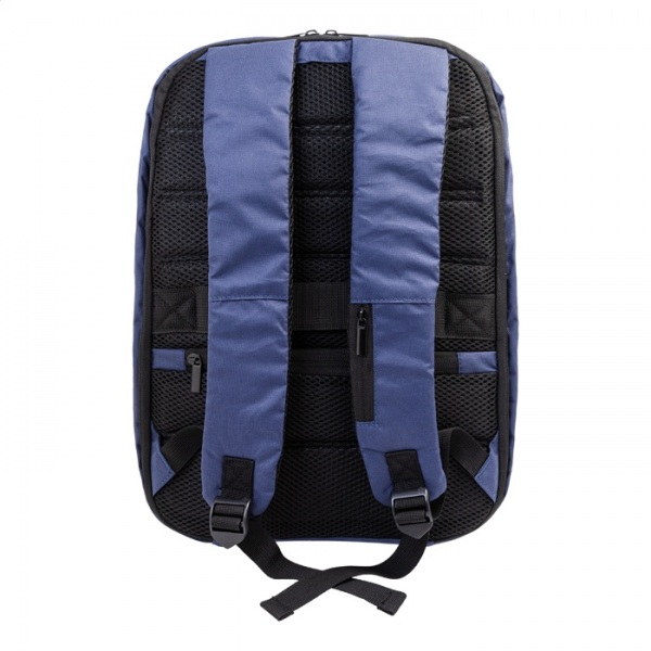 Batoh z RPET s ochranou proti krádeži s priehradkou na zips, polstrovanou priehradkou na notebook (15") a tablet (12"), popruhom na kufor, polstrovaným chrbtom a ramennými popruhmi. So skrytým vreckom proti krádeži. S výrazným štítkom RPET.
