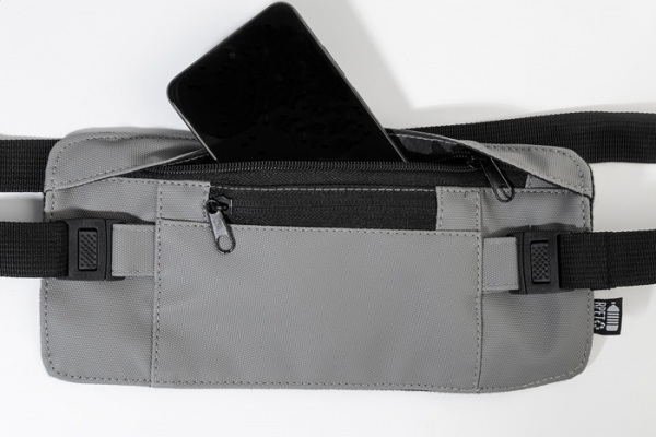 Úzka ľadvinka z RPET s prednou stranou potiahnutou PU, priehradkou na zips a predným vreckom a nastaviteľným popruhom. Polyester 600D RPET s PU záterom a výrazným štítkom RPET.