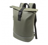 Vodeodolný batoh s rolovacím vrškom s hlavnou priehradkou na zips a zapínaním na pracku, predným vreckom s vodeodolným zipsom, polstrovanou priehradkou na notebook (15") a reflexným prúžkom. S polstrovaným chrbtom a ramennými popruhmi.