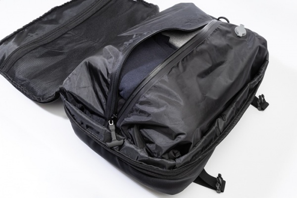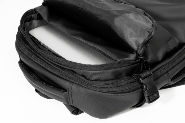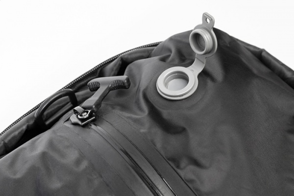 Vodeodolný, rozťahovací kompresný batoh s vákuovou kompresnou priehradkou, priehradkou na notebook (15") a predným vreckom na zips. Bočné pracky, popruh na kufor, polstrovaný chrbát a popruhy. Vrátane vákuovej pumpy s USB akumulátorom (1500 mAh).
