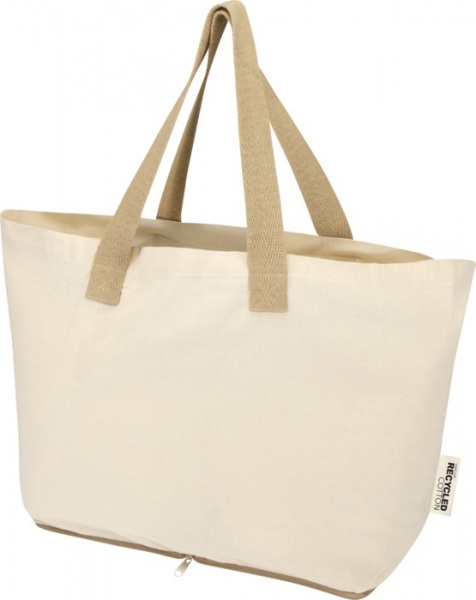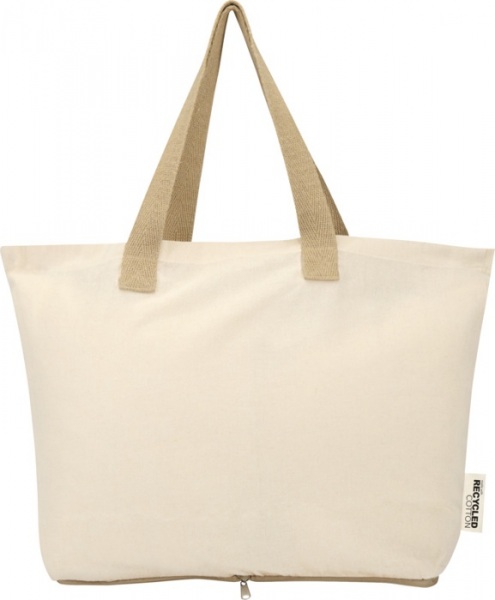 Ľahká a praktická skladacia nákupná taška zo 100% recyklovanej bavlny s certifikáciou GRS a gramážou 140 g/m2. Je možné ju úhľadne zložiť do puzdra na zips v spodnej časti. Nosnosť až 10 kg a má dvojité uši pre väčšiu oporu. Objem: 12 litrov.