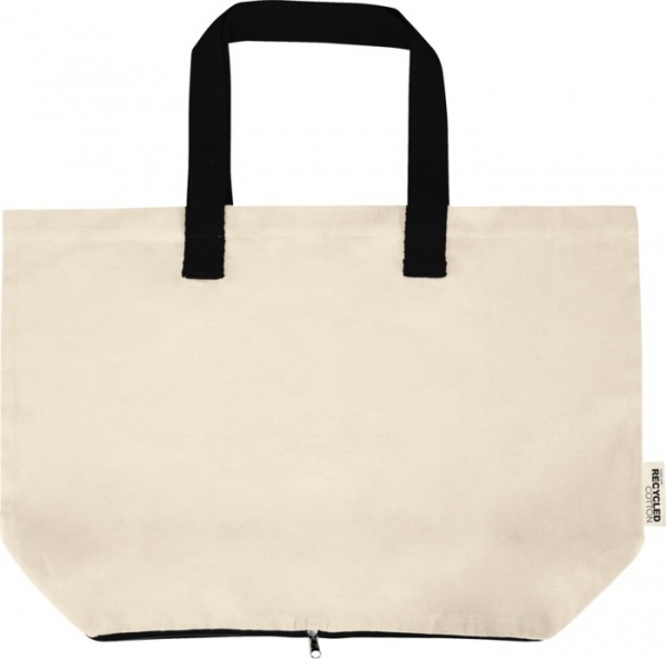 Ľahká a praktická skladacia nákupná taška zo 100% recyklovanej bavlny s certifikáciou GRS a gramážou 140 g/m2. Je možné ju úhľadne zložiť do puzdra na zips v spodnej časti. Nosnosť až 10 kg a má dvojité uši pre väčšiu oporu. Objem: 12 litrov.