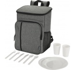 Chladiaci batoh (20l) s opakovane použiteľnou sadou príborov pre 2 osoby z potravinárskeho plastu (2 nože, 2 vidličky, 2 šálky a 2 taniere). Nepriepustný izolovaný hlavný priestor (PEVA), 2 bočné vrecká, polstrované nastaviteľné popruhy a pevná rukoväť.