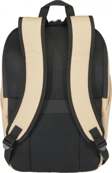 Batoh na notebook 15? s ochranou proti krádeži z recyklovanej PU kože (GRS) a farebne zladenou podšívkou RPET. Priehradka na notebook so zadným prístupom, 2 bočné vrecká a predné vrecko s vodeodolným zipsom. Priedušný chrbtový panel. Objem: 18 litrov.