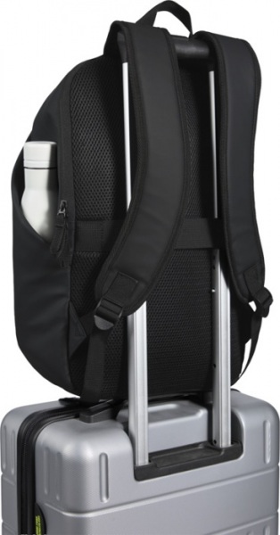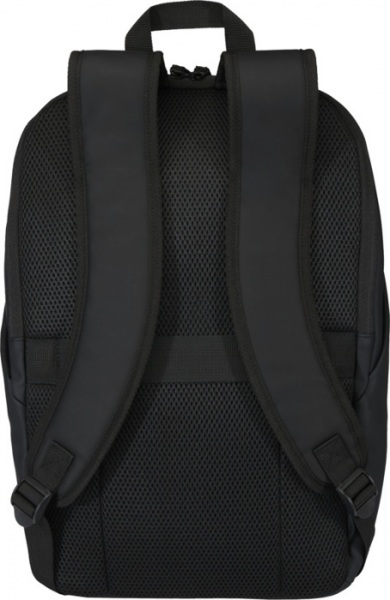 Batoh na notebook 15? s ochranou proti krádeži z recyklovanej PU kože (GRS) a farebne zladenou podšívkou RPET. Priehradka na notebook so zadným prístupom, 2 bočné vrecká a predné vrecko s vodeodolným zipsom. Priedušný chrbtový panel. Objem: 18 litrov.