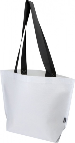 Veľká nákupná taška s dvojitým laminovaným dnom z RPET s gramážou 150 g/m2 s certifikáciou GRS. Disponuje priestrannou otvorenou hlavnou priehradkou, robustnými zosilnenými rukoväťami a širokým dnom. Nosnosť: 10 kg. Objem: 18 litrov.