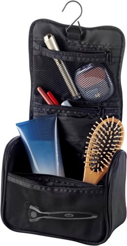 Toaletná taška na zips z polyesteru 600D s priehradkami.