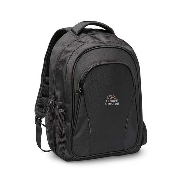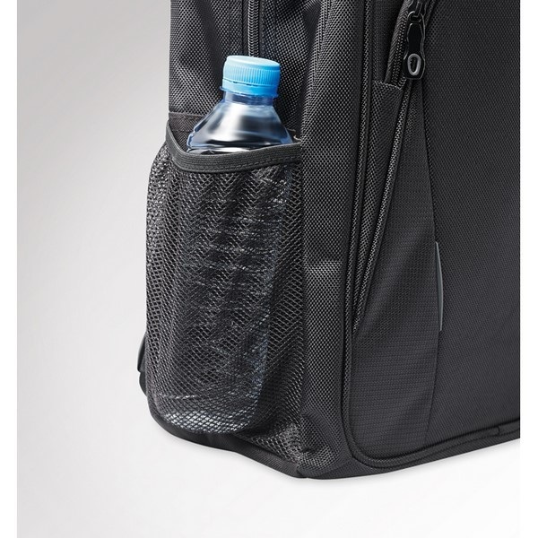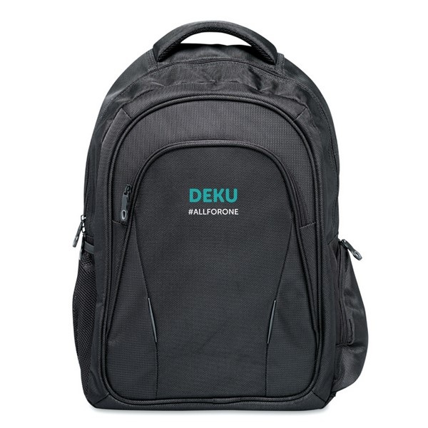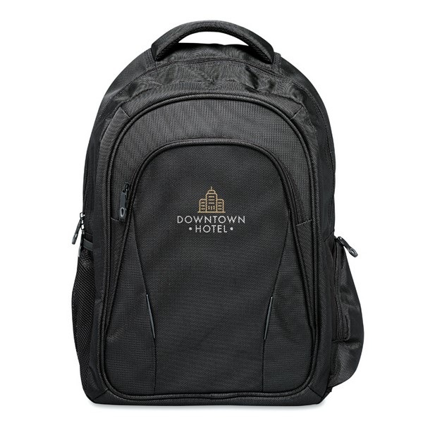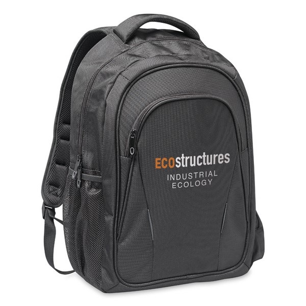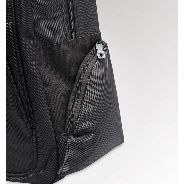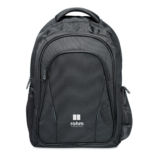 Ruksak na 15 notebook s priečinkami vrátane niekoľkých vreciek a držiaka na pero. Ruksak má polstrovaný chrbát a ramenné popruhy. Materiál: 1680D polyester.