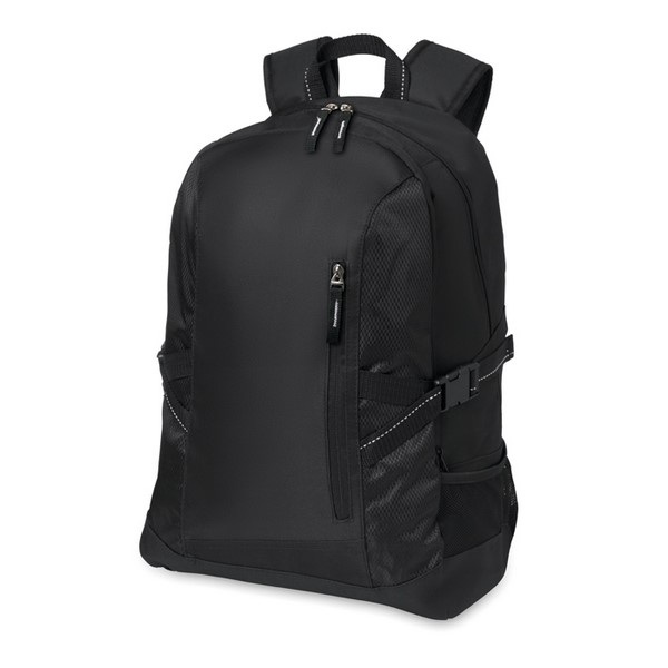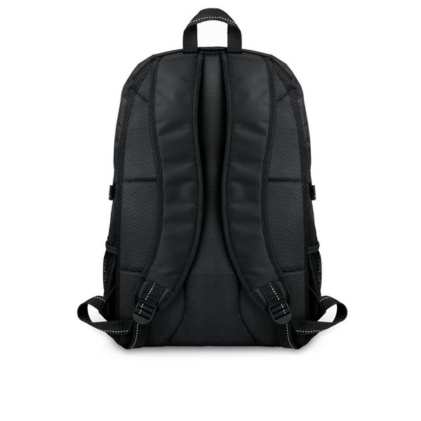 Ruksak má vnútorný priečinok na 15" notebook, jedno hlavné vrecko na zips, dve bočné vrecká a odnímateľný popruh na rameno.