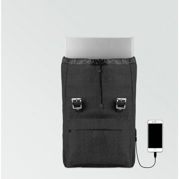 Jeden priečinok je na 15" notebook. Súčasťou ruksaku je aj USB nabíjací kábel, magnetické zapínanie a predné vrecko na zips.