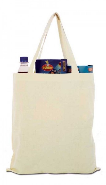 Eco, bavlnená taška prírodnej farby s krátkymi ušami.