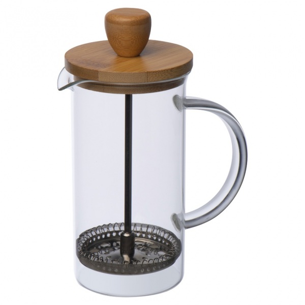Kanvica na čaj a kávu z borosilikátového skla s lisom, bambusovým viečkom a objemom 350 ml.