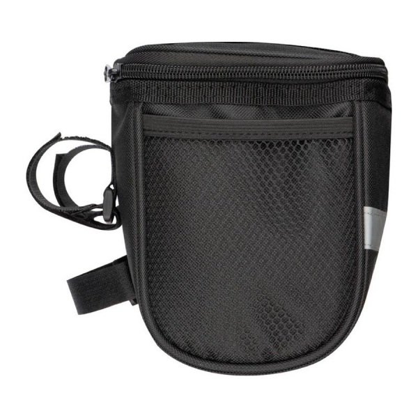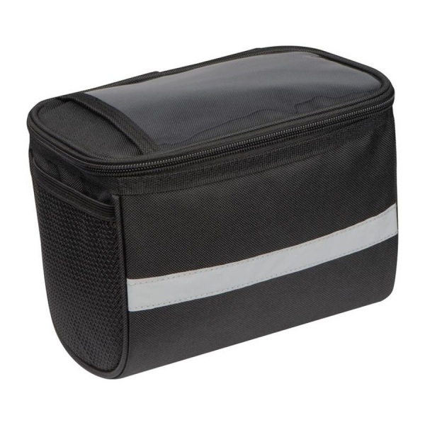 Taška na bicykel s veľkou hlavnou priehradkou, priehradkou pre smartfóny s fóliou pre dotykové telefóny. Reflexný pásik na prednej strane.