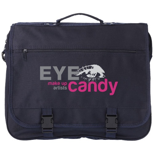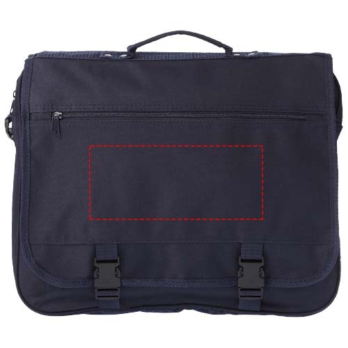 Taška má nastaviteľný ramenný popruh, chlopňu na sponu, vrecko na zips v klope, hlavný priestor na zips a niekoľko otvorených kapsičiek pod chlopňou. Polyester 600D.