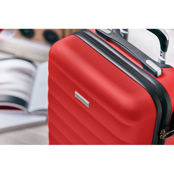 20-palcový kufok s tvrdou škrupinou z ABS. 1 hlavná priehradka a vnútorná priehradka. Obsahuje bezpečnostný zámok a 4 kolieska.