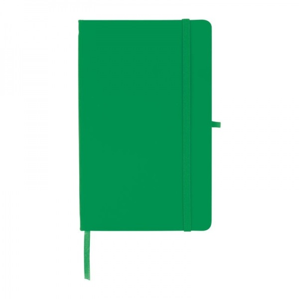 Zápisník A5 z PU materiálu. Zápisník obsahuje 190 čistých strán, záložku a elastickú gumičku.