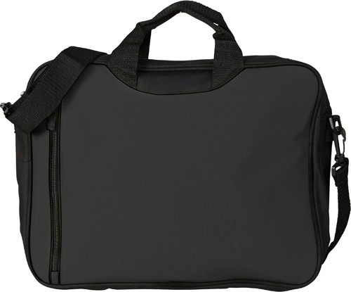 Polyesterová (600D) taška na plece s 2 priehradkami na zips a nastaviteľným ramenným popruhom. Rozmer: 39 x 37 x 7,5 cm