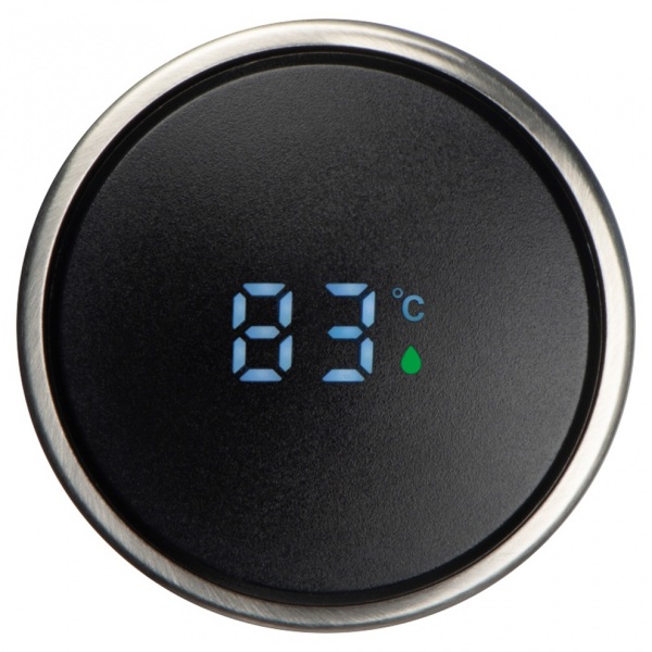 Termoska z borosilikátového skla s digitálnym ukazovateľom teploty vo veku, sitkom a objemom 400 ml.