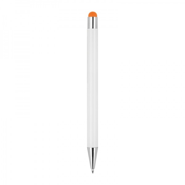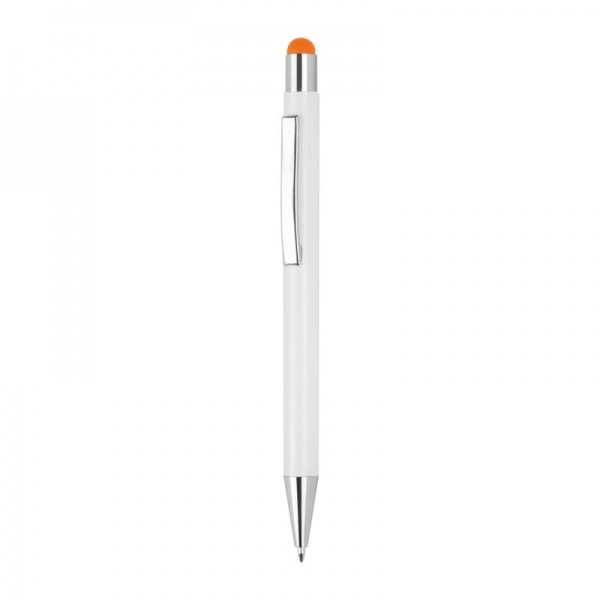 Výsuvné hliníkové guľôčkové pero so striebornými aplikáciami, dotykovou funkciou a modrou náplňou.