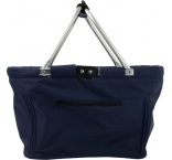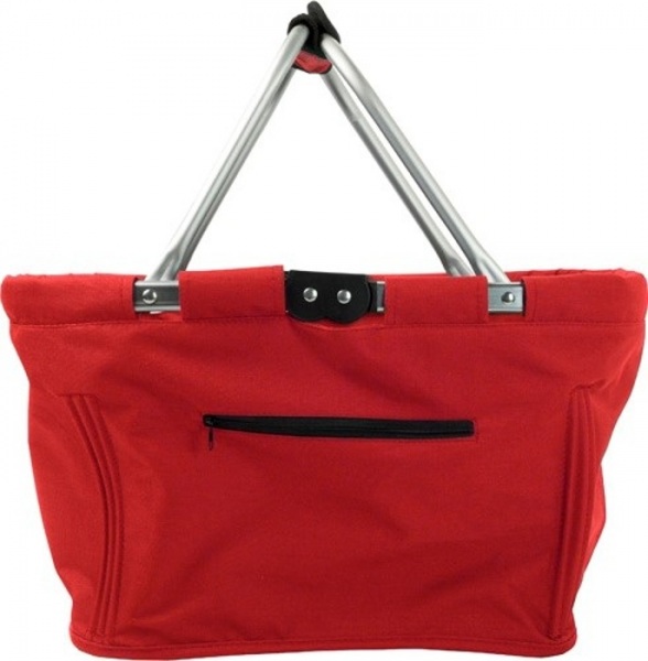Skladací nákupný košík z polyesteru (600D), s bočným vreckom na zips a hliníkovým rámom.