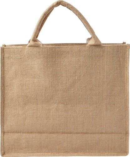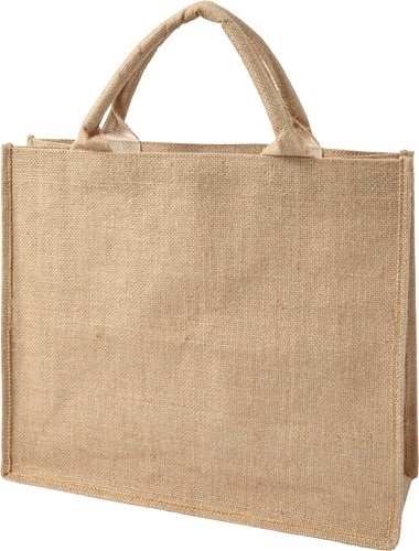 Nákupná taška z juty s laminovaným vnútrom.