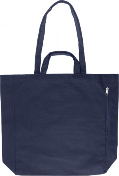 Nákupná taška z recyklovanej bavlny s krátkymi a dlhými rúčkami. Bočné vrecko so zipsom.