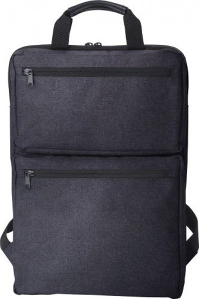 Polycanvas (300D) batoh s dvoma vonkajšími vreckami na zips a vnútorným priestorom na notebook (15 palcov). S polstrovanými ramennými popruhmi a dvoma krátkymi rúčkami navrchu.