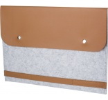 RPET plstené vrecko na notebook (14 palcov) s PU detailmi. Zatvára sa na dva gombíky.