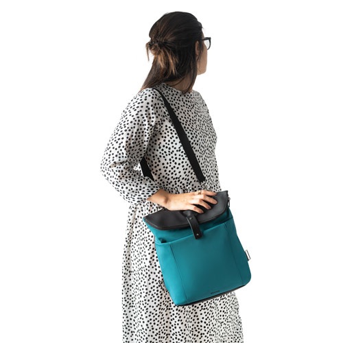 Detaily v PU a drobné kovové doplnky. PU dno umožňuje ľahké čistenie. Batoh má 2 vonkajšie vrecká a hlavnú priehradku s vnútorným vreckom. Dá sa nosiť obojstranne. Možné použiť v 2 veľkostiach. Kapacita 12L. Dodávané v taške z netkanej textílie
