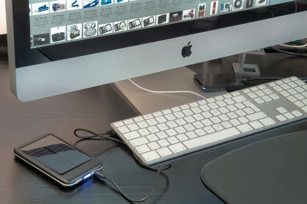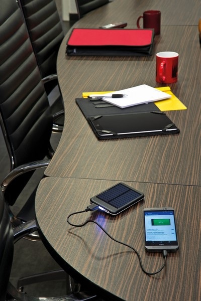 Solárny powerbank s kapacitou 4 000 mAh a USB káblom.