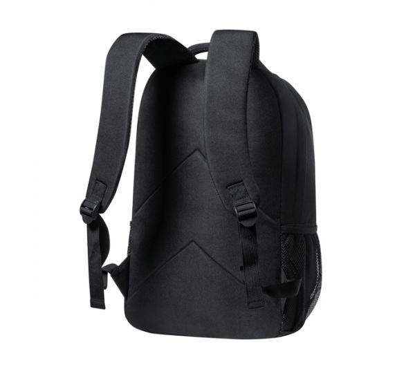 RPET ruksak s priehradkami na zips, bočnými sieťovanými vreckami, elastickými šnúrkami vpredu, polstrovanou priehradkou na notebook (15") a tablet (12"), vystuženým chrbtom a ramennými popruhmi. S výrazným štítkom RPET. Polyester 600D RPET.