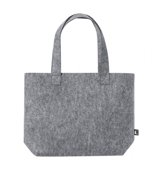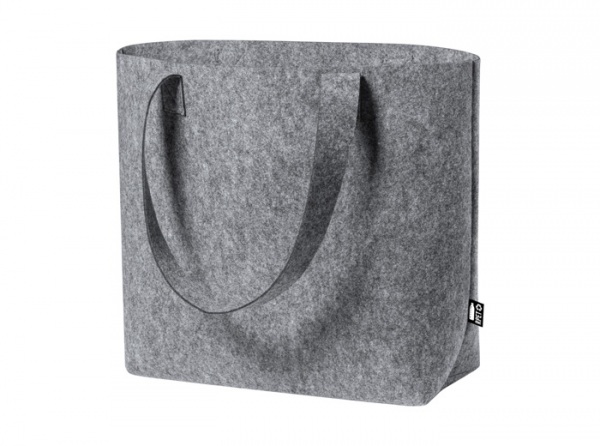 RPET filcová nákupná taška s dlhými ušami a rozšíreným dnom. S výrazným štítkom RPET.