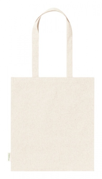Nákupná taška z recyklovanej bavlny s dlhými ušami a výrazným štítkom 100% recyklovaná bavlna, 140 g/m2.