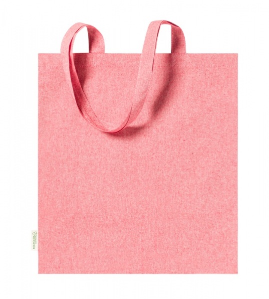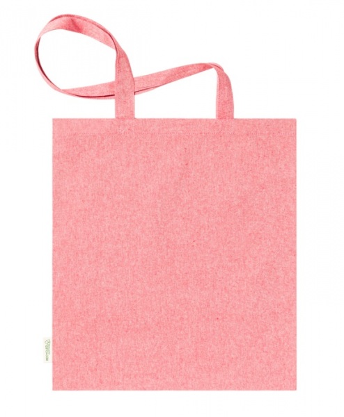 Nákupná taška z recyklovanej bavlny s dlhými ušami a výrazným štítkom 100% recyklovaná bavlna, 140 g/m2.