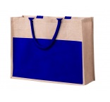 Plážová taška z laminovanej juty s bavlnenými rúčkami a predným vreckom.