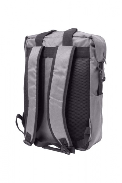 Ruksak s hlavnou priehradkou na zips a predným vreckom, polstrovanou priehradkou na notebook (15") a tablet (10"), bočnými popruhmi a vreckami na pracky, polstrovaný chrbát a ramenné popruhy. 600D RPET polyester.
