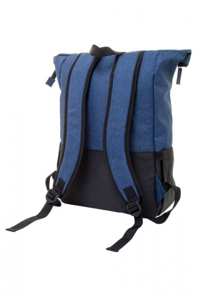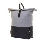 Dvojfarebný rolovací ruksak so zapínaním na pracku, hlavná priehradka na zips, polstrovaná priehradka na notebook (15") a tabliet (10"), bočné vrecká, polstrovaný chrbát a ramenné popruhy. 300D RPET polyester.