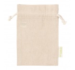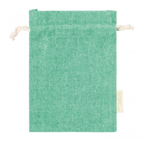 Opätovne použiteľné vrecko z recyklovanej bavlny, sťahovanie na šnúrku. 100% recyklovaná bavlna, 120 g/m2.