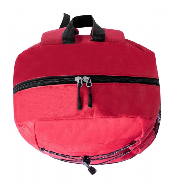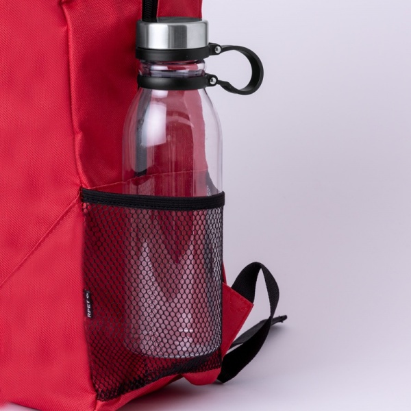 Batoh RPET s priehradkou na zips a predným vreckom, bočné sieťované vrecká, polstrovaný chrbát a ramenné popruhy. 600D RPET polyester s výrazným štítkom RPET.