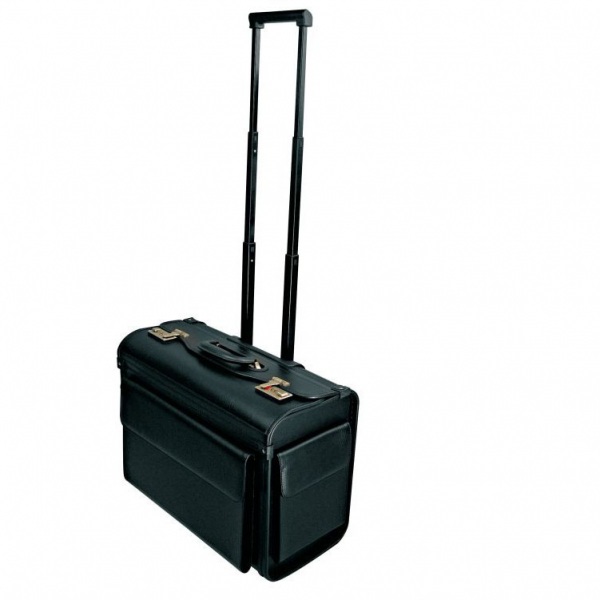 Veľká aktovka na kolieskach v čiernej farbe, s extra dlhou a pohodlnou rúčkou, veľkým vnútorným priestorom.